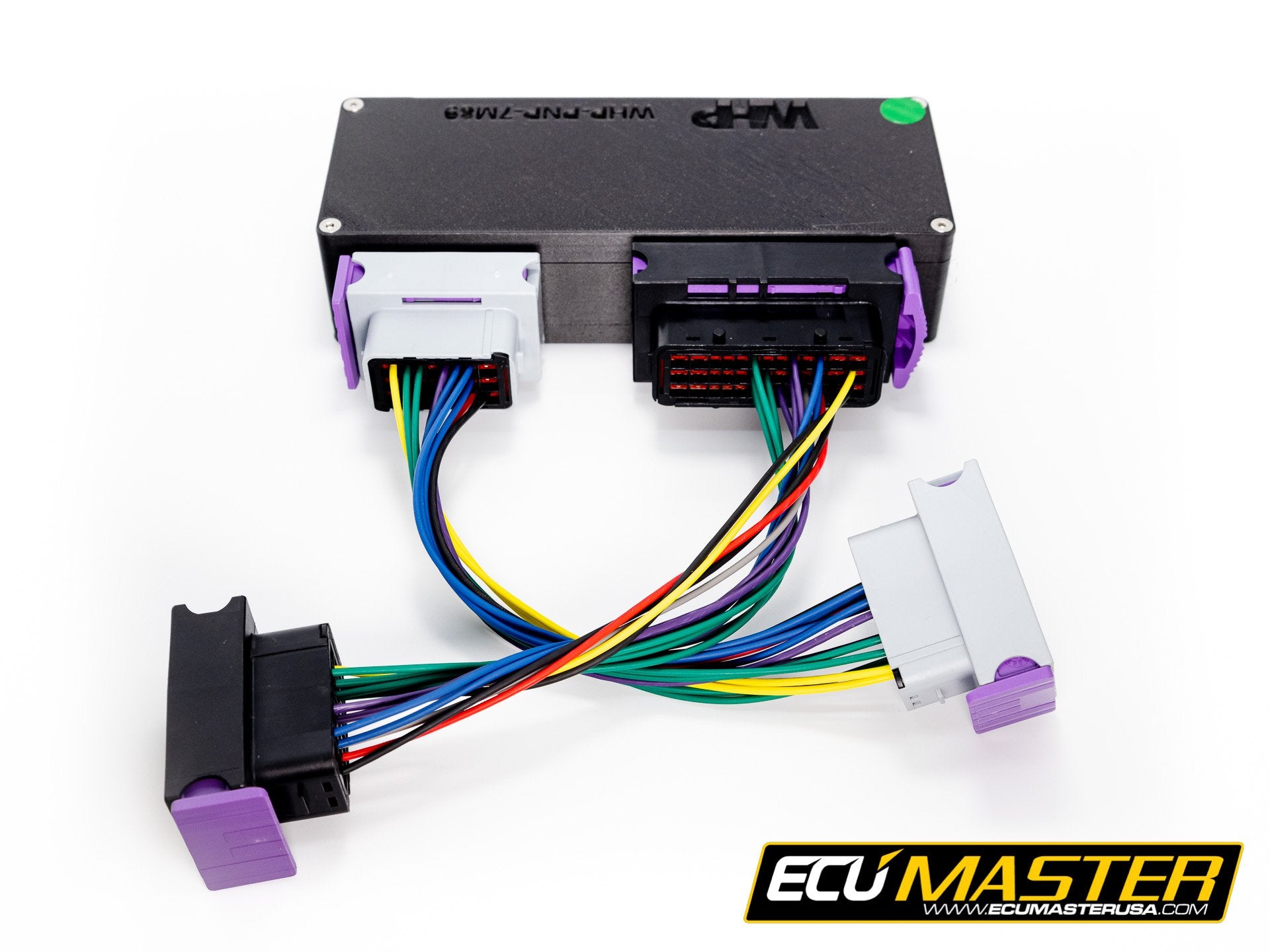 ECUMASTER Black Plug and Play adapter for the 89-92 Toyota Supra 7MGTE with manual transmission allows for plug and play installation of EMU or EMU Classic standalone ECUs. All ECUs are sold separately.