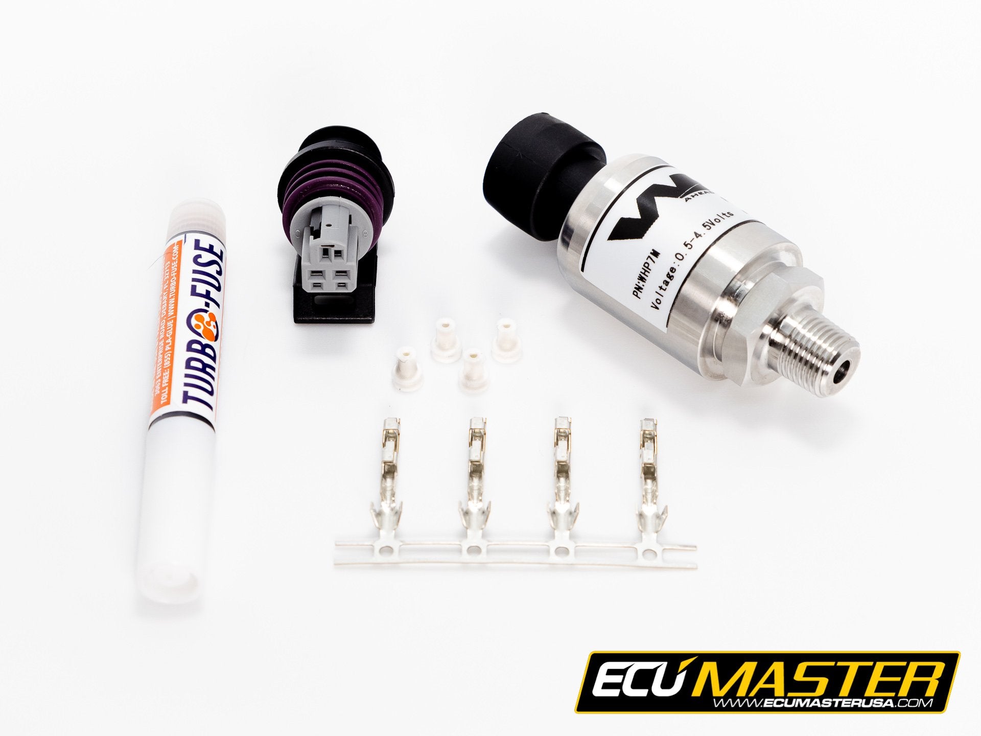 WHP pressure sensors are the perfect companion to any ECU. WHP sensors are built to custom specifications in an ISO9001 Certified facility. The latest developments in sensor technology are used to create an extremely compact sensor, easing installation in cramped engine bays and chassis. All sensors are compensated for temperature over a broad range and accurately measure pressure within .5%. Sensor bodies are crafted from 304 Stainless Steel and feature CNC cut threads and wrench flats for reliable sealing and trouble-free installation. Each sensor is packaged with a Delphi connector kit, installation instructions, and a tube of thread sealing compound.